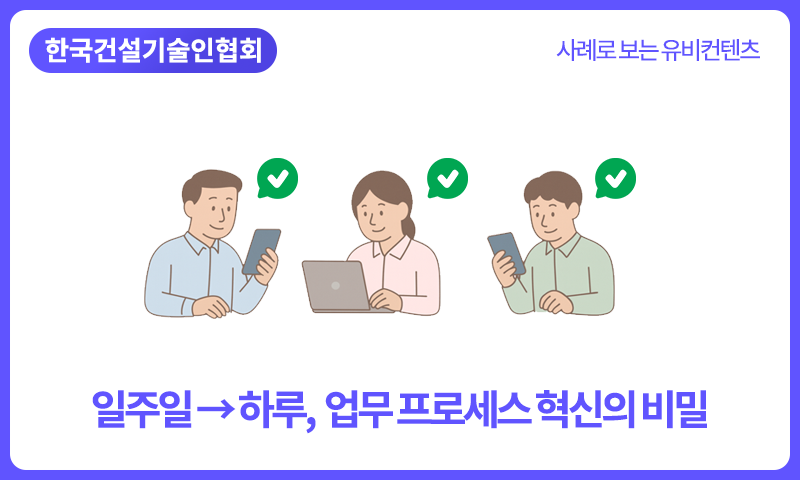 일주일 걸리던 증명서 발급, 단 하루 만에? 유비컨텐츠 도입 성공사례 하나의 문서를 처리하기 위해 여러 부서, 심지어 여러 회사의 확인을 거쳐야 하는 복잡한 업무가 있으신가요? 관련된 모든 담당자가 얽혀있어 업무 병목 현상이 잦고, 진행 상황조차 파악하기 어려운 경우가 많습니다. 특히 증명서 발급처럼 여러 이해관계자의 확인이 필수적인 업무는 더욱 그렇습니다. 오늘은 [건설기술인] <-> [건...