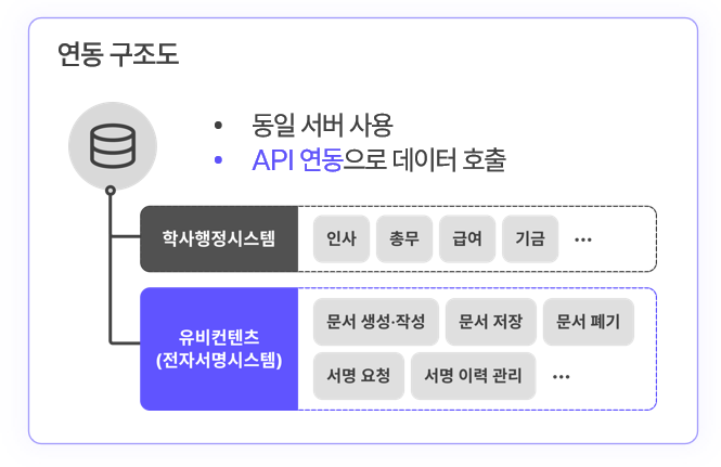 기존에 사용하고 있던 학사행정 시스템(인사, 총무, 급여, 기금 관리 등)을 그대로 사용하면서도