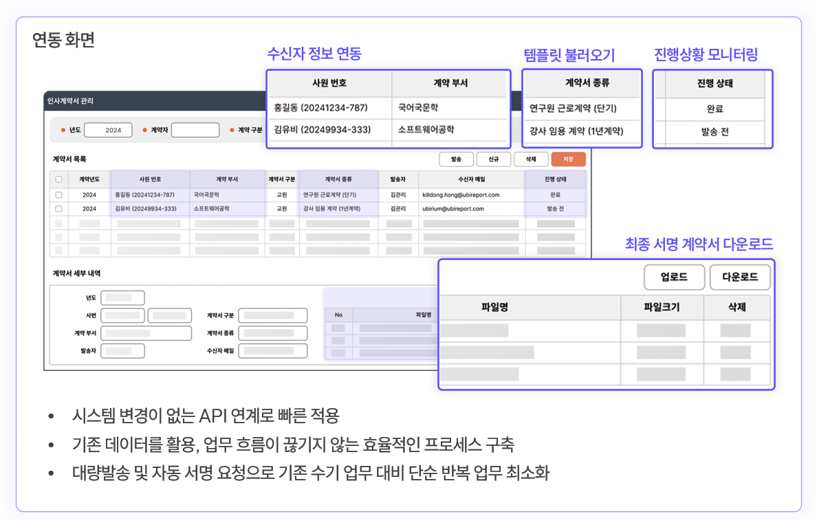 이러한 통합을 통해, 수작업으로 진행되던 인사계약 관련 반복 업무들은 인사계약서 관리 시스템을 통해 일원화되고 자동화되어